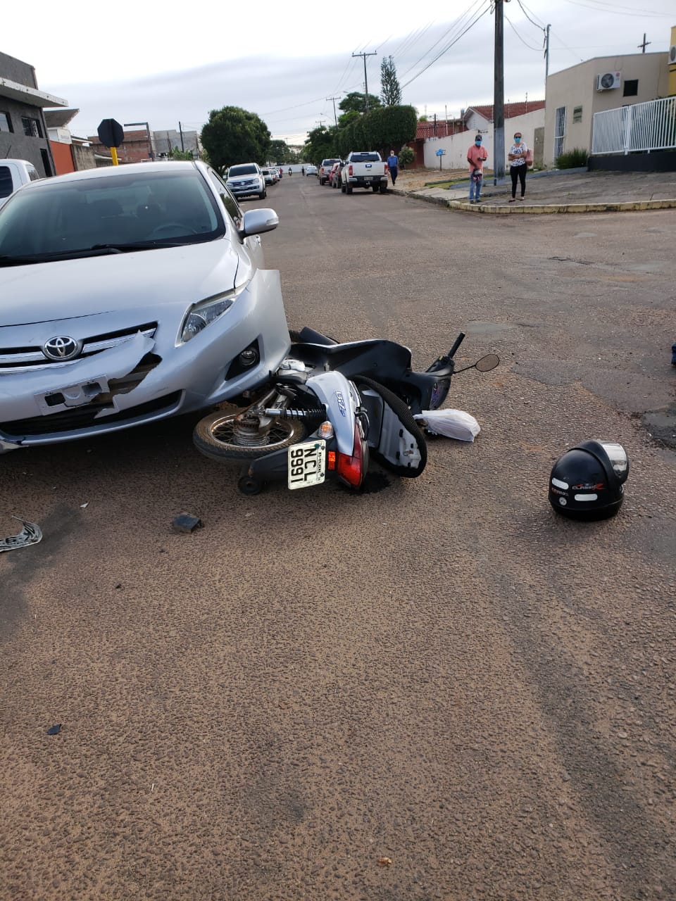 Na manhã desta segunda-feira, 04 de maio, por volta das 07h50, um Toyota Corolla, cor prata, com placa NOK-9480 que seguia pela rua Deofé Antônio Geremias quando foi cruzar a avenida Sabino Bezerra de Queiroz, ao lado do Hospital Regional, atingiu uma moto Honda Biz, cor prata, placa NCL-9991, pilotada por uma senhora entre 40 e 45 anos.