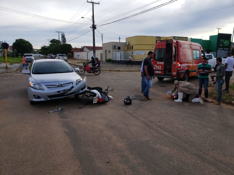 O Corolla seguia em direção a BR-364 e a Biz sentido BR-174. A senhora que pilotava a Biz teve várias escoriações no corpo e reclamava de muita dor no braço e perna direita, onde o carro lhe atingiu.