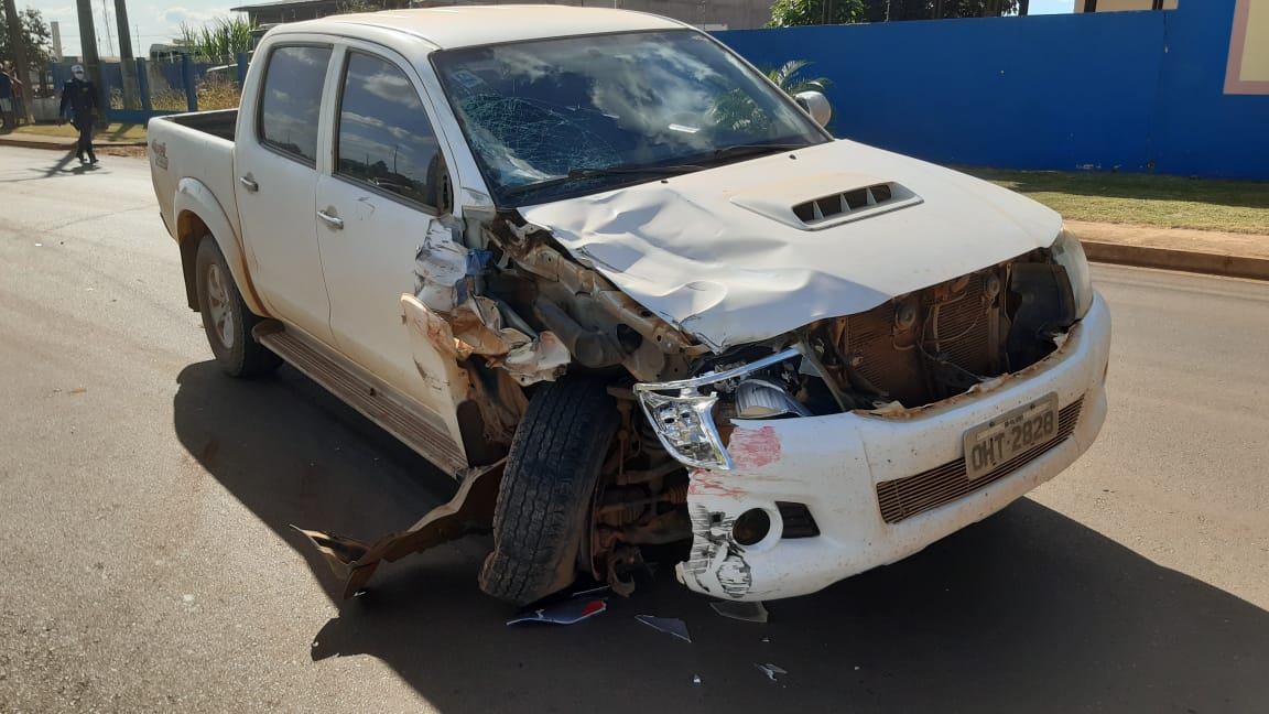 O motorista da camionete Toyota Hilux de cor branca transitava pela avenida Celso Mazutti sentido Cuiabá e relatou que o motociclista teria invadido a contramão de direção e atingido a picape.