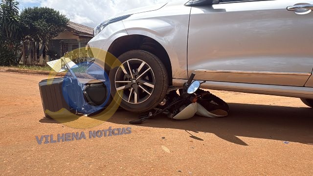 Um acidente de trânsito foi registrado na manhã desta quarta-feira (04) no cruzamento das avenidas Arnaldo Batista de Andrade, Genival Nunes da Costa e Goiás, no bairro Parque São Paulo, em Vilhena.
