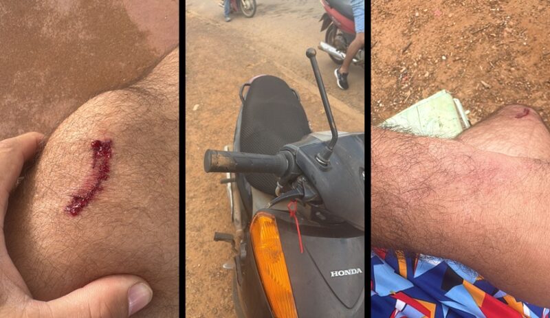 Sem tempo de reação, o motociclista bateu na lateral do carro e acabou sendo arremessado ao solo. A menina que estava na garupa saiu ilesa. O repórter sofreu apenas ferimentos superficiais, mesmo ainda estando em processo de recuperação de um acidente recente.