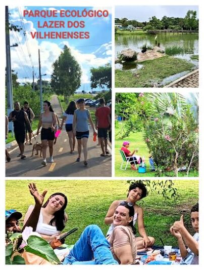 Foto do Parque Ecológico. Lazer para os vilhenenses. Muita gente bonita e alegre frequentam o Parque todas as tardes e final de semana. Fazem suas caminhadas e seus “pique-niques”. Para o seu final de semana, Vilhena oferece vários lugares de passeios. Há muitas chácaras ao redor da cidade, os pesqueiros e outros ambientes onde os vilhenenses e visitantes podem passear e passar momentos prazerosos. Vilhena é linda!