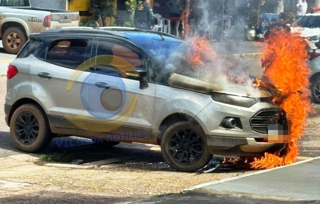 Um carro foi destruído por um incêndio na manhã desta sexta-feira (30) no Centro de Vilhena, próximo à agência do Banco do Brasil.