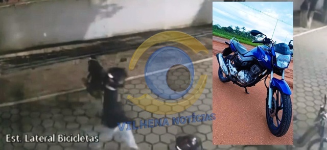 Uma câmeras de segurança registrou o furto de uma motocicleta no pátio do CEEJA, no bairro Jardim Eldorado, em Vilhena. O fato foi registrado na noite de quinta-feira (18), por volta das 19h10.