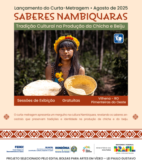 O curta-metragem “Saberes Nambiquaras: Tradição Cultural na Produção da Chicha e Beiju”, produzido em Vilhena (RO), foi disponibilizado no YouTube para acesso gratuito da população. A obra, coordenada pela produtora cultural Andressa Machado, mergulha no cotidiano e nos saberes ancestrais do povo Nambiquara, revelando práticas que preservam não apenas a gastronomia tradicional, mas também a identidade e a memória coletiva da comunidade.