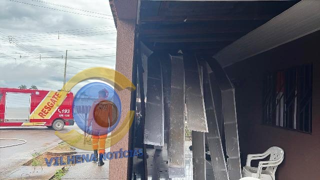Devido à alta temperatura, o forro da residência cedeu e caiu, causando danos significativos à estrutura do imóvel.