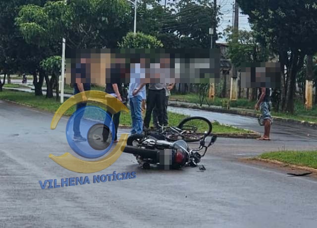 Um acidente envolvendo uma motocicleta e uma bicicleta foi registrado no início da tarde desta quarta-feira, 4, na avenida Paraná, em Vilhena.