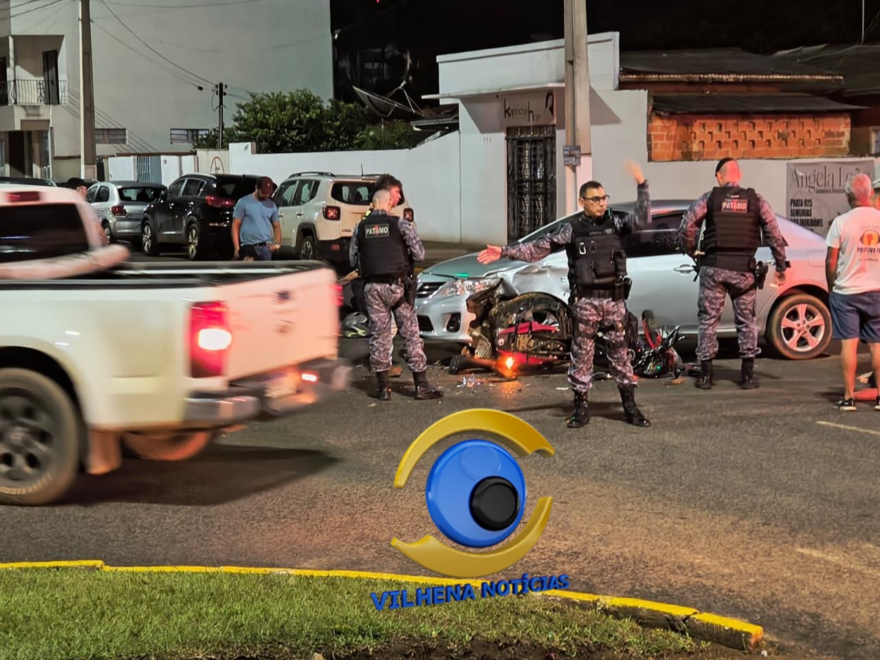 Um acidente de trânsito registrado na noite de sábado, 21, no cruzamento da avenida Brigadeiro Eduardo Gomes com a rua Benno Luiz Graebin, no bairro Jardim Eldorado, em Vilhena, deixou duas pessoas feridas e resultou em diversas irregularidades por parte de um dos envolvidos.