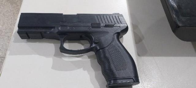 Durante buscas no local onde ele estava escondido, os policiais também encontraram um simulacro de arma de fogo semelhante a uma pistola. O objeto teria sido arremessado pelo suspeito através de uma janela de ventilação do banheiro.