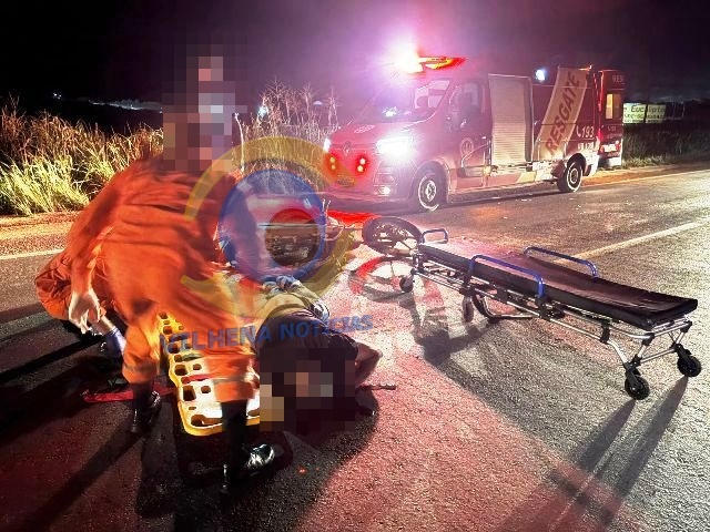 Um motociclista ficou em estado gravíssimo após se envolver em um acidente com uma carreta na noite desta segunda-feira (22), na BR-364, em um trecho rural de Vilhena, nas imediações do frigorífico JBS Friboi.