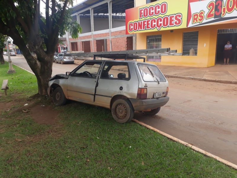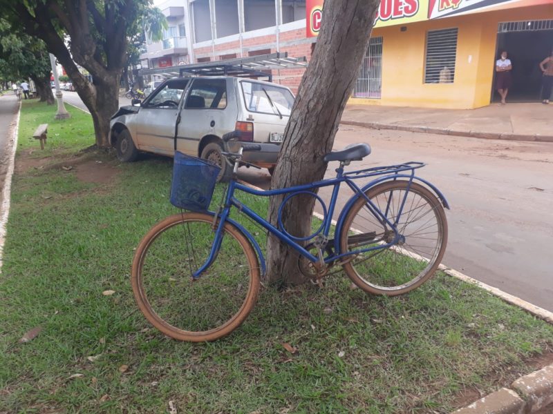 De acordo com o apurado, o motorista do veículo Fiat Uno Mille de cor prata transitava pela avenida Paraná sentido Cohab, momento em que um ciclista cruzou a avenida, sendo que ao tentar evitar a colisão, o motorista tirou o carro para o lado esquerdo, e acabou subindo no canteiro central e atingindo uma árvore e mesmo assim o ciclista também foi atingido.