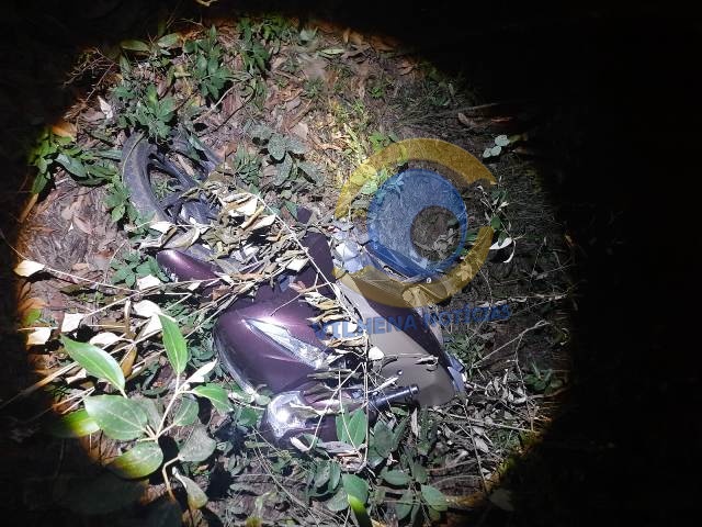 A partir das informações repassadas, os militares seguiram até uma área de mata nas proximidades do bairro Alvorada, onde localizaram a motoneta escondida.