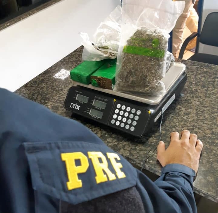 Uma mala com quase 2 kg de maconha foi apreendida por agentes da Polícia Rodoviária Federal (PRF), na tarde desta segunda-feira (18), em um ônibus que saiu de Cascavel (PR) com destino a Rio Branco (AC).