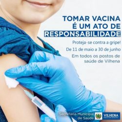 A  terceira fase da  campanha de vacinação contra a gripe acaba na terça-feira, 30 de junho. Desde o início da campanha, em 25 de março, já foram vacinados mais de 21 mil vilhenenses. A meta é imunizar mais de 23 mil pessoas e, para tanto, a Secretaria Municipal de Saúde (Semus) reforça o alerta para que os seguintes públicos-alvos, que ainda precisam atingir a meta de imunização: mamães com bebês de até 45 dias, crianças de seis meses a 5 anos, 11 meses e 29 dias, gestantes e doentes crônicos.
