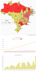 Apesar dos altíssimos números, que colocam a crise do coronavírus no Brasil como a segunda mais grave do mundo no momento, a OMS vê sinais de estabilização das estatísticas brasileiras, o que indica que o momento de crescimento exponencial já passou. Isso se reflete nos gráficos por semana epidemiológica: tanto as mortes quanto os novos casos diminuíram o ritmo de crescimento entre as semanas 23 e 24 (a semana 25 é a atual, ainda com dados parciais, portanto não deve ser considerada). Resta saber se essa tendência se manterá ou se a reabertura econômica que se tem visto em vários estados poderá causar um novo movimento de aumento.