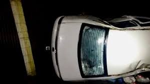 Outros dois bandidos continuaram em fuga no carro, mas em alta velocidade acabaram batendo em um poste e capotando o veículo Siena.