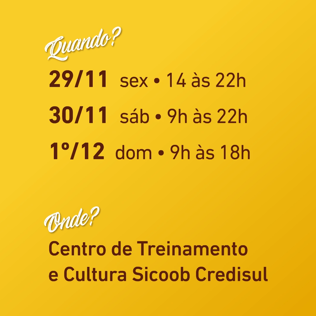 O Centro de Treinamento e Cultural – Sicoob Credisul fica na Avenida Capitão Castro, 3112, ao lado da Escola Wilson Camargo. O evento será aberto a toda população. Entrada Gratuita.