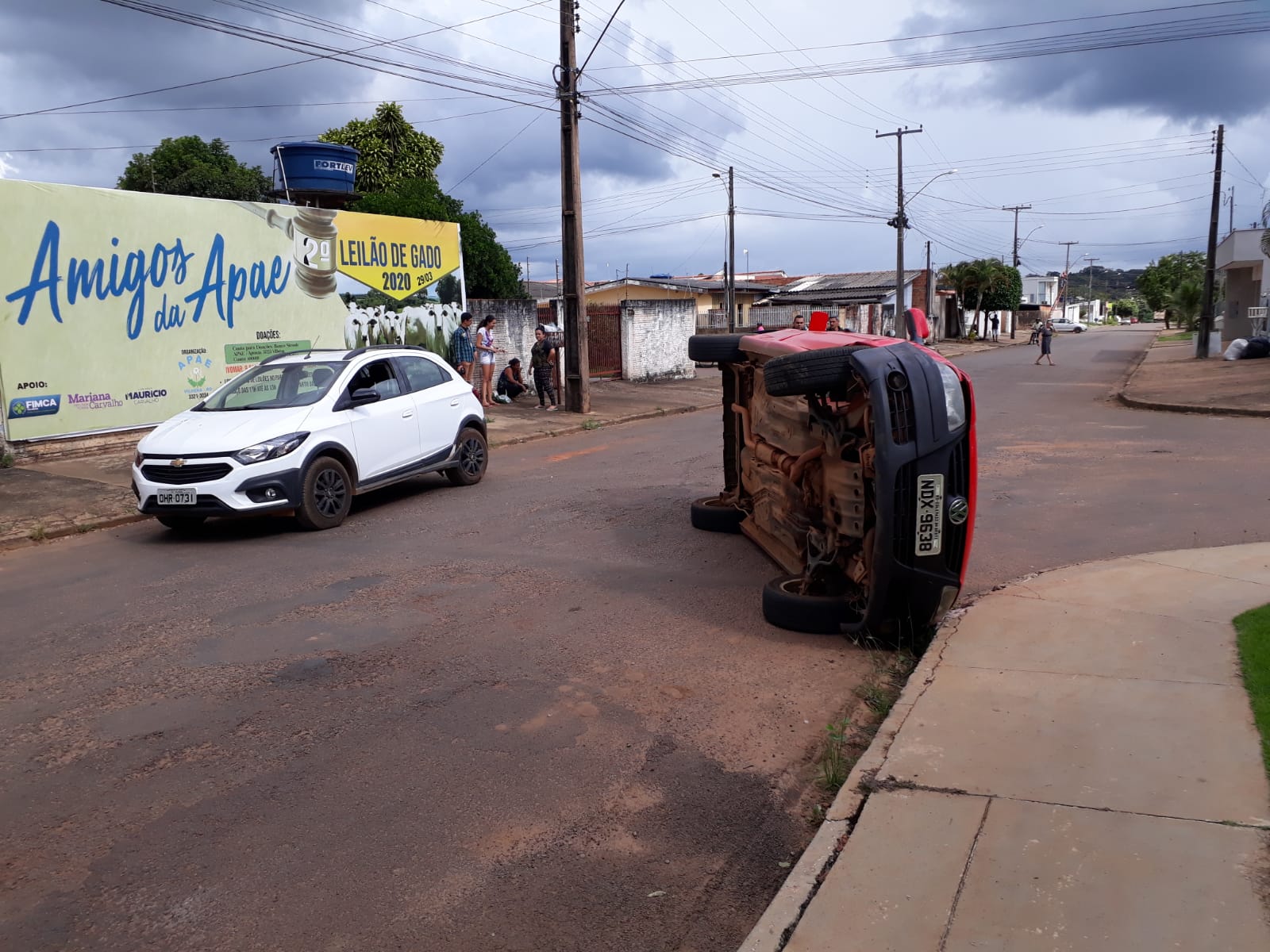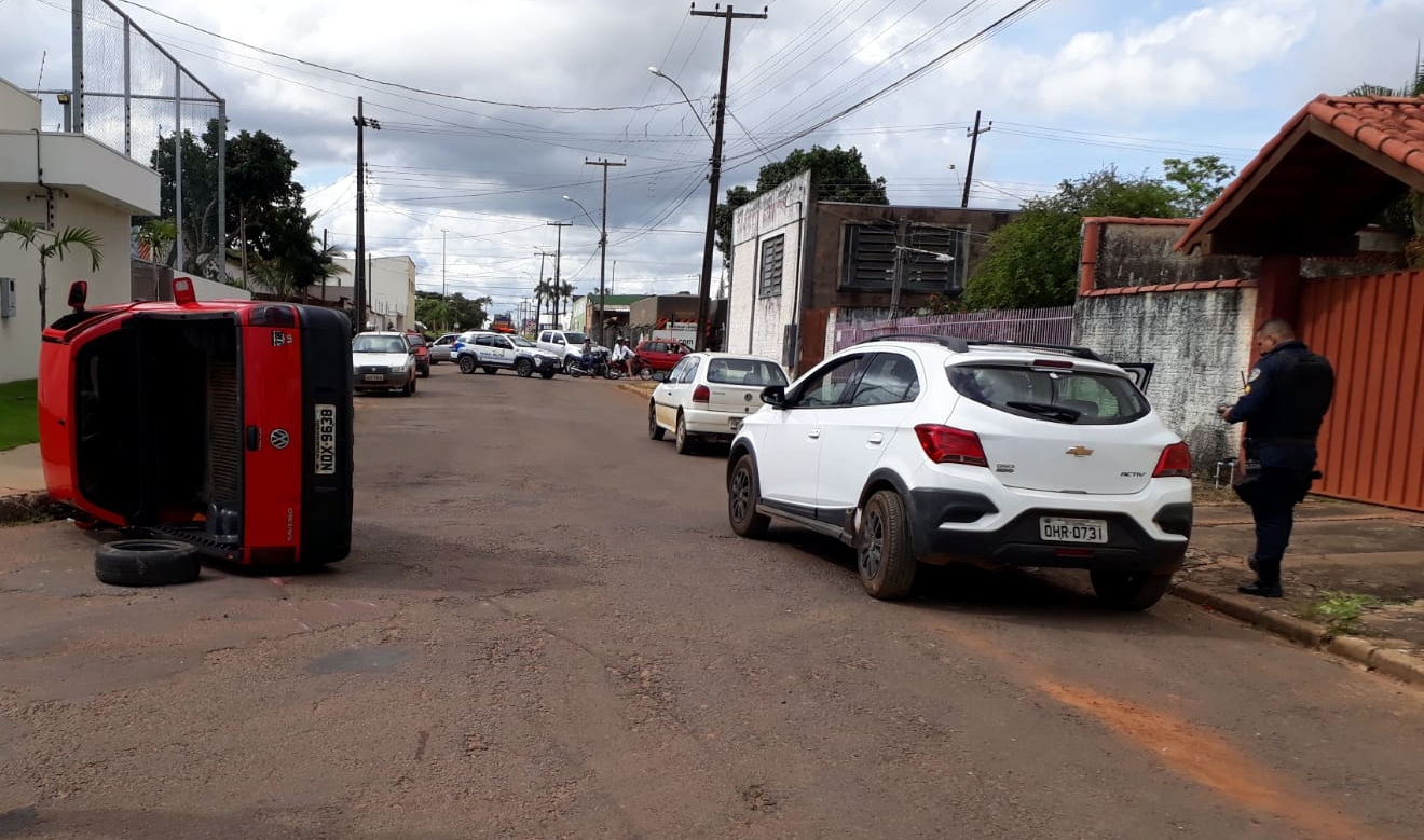 Um homem ficou ferido em um acidente envolvendo um utilitário Saveiro e um automóvel Onix em Vilhena, na tarde desta quarta-feira, 15 de abril, no bairro 5º BEC. O acidente aconteceu na rua Cláudio Coutinho esquina com a rua Washington Luís. A vítima estava no carro que capotou.
