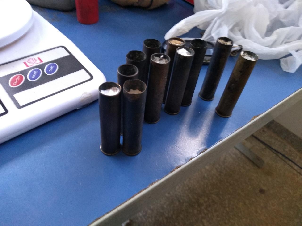 A mulher relatou ainda que havia ido até a casa de uma vizinha e quando retornou, deparou-se com o marido de posse da espingarda e proferindo ameaças. Os militares revistaram a residência e localizaram além da espingarda, um facão Corneta de 3 listras com lamina de aproximadamente 40 cm , um facão Tramontina com lamina de aproximadamente 30 cm, 10 cartuchos Cal.32 carregados, 1 cartucho cal. 32 deflagrado, um pote contendo varias espoletas e um vidro contendo Pólvora.