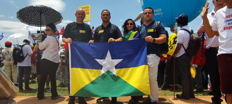 Everaldo Ribeiro, presidente do Sindsul – Sindicato dos Servidores Municipais do Cone Sul de Rondônia – participa hoje (29), em Brasília, da Marcha Nacional do Serviço Público Contra a Reforma Administrativa.