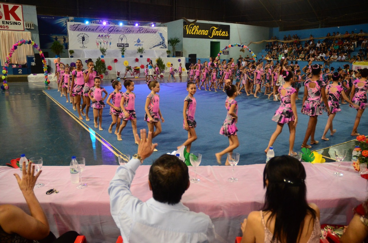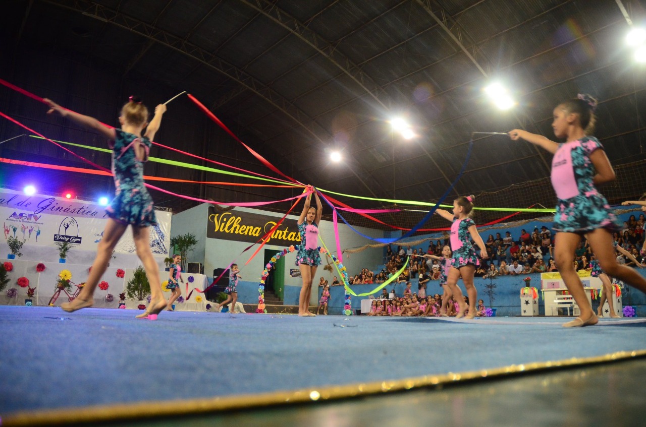 Os mais de 300 ginastas que fazem parte da Associação de Ginástica Vilhenense (AGV) se apresentaram na noite do último sábado no Ginásio Municipal de Esportes, com arquibancadas lotadas. Eduardo Japonês, prefeito de Vilhena, participou do evento acompanhado de sua família e elogiou a apresentação e salientou o incentivo ao esporte que a gestão tem realizado.