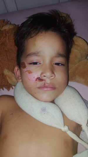 O filho que estava com ela no momento do acidente segue acamado, sem poder frequentar a escola, brincar ou realizar suas atividades normais, o que torna a recuperação ainda mais difícil para a criança.