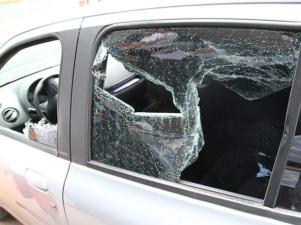 Dentro do carro foram encontrados vários tijolos que foram usados para quebrarem as janelas do automóvel.